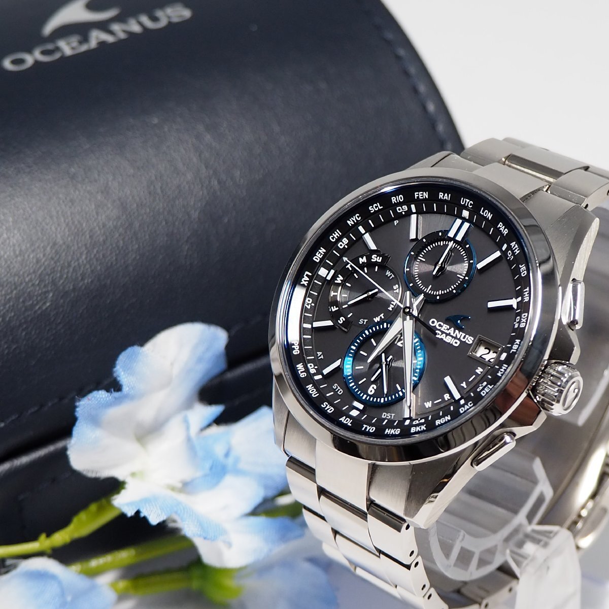 > 美品 カシオ CASIO オシアナス 0CW-T2600 OCEANUS チタン 電波ソーラー メンズ腕時計 箱 H148 中古