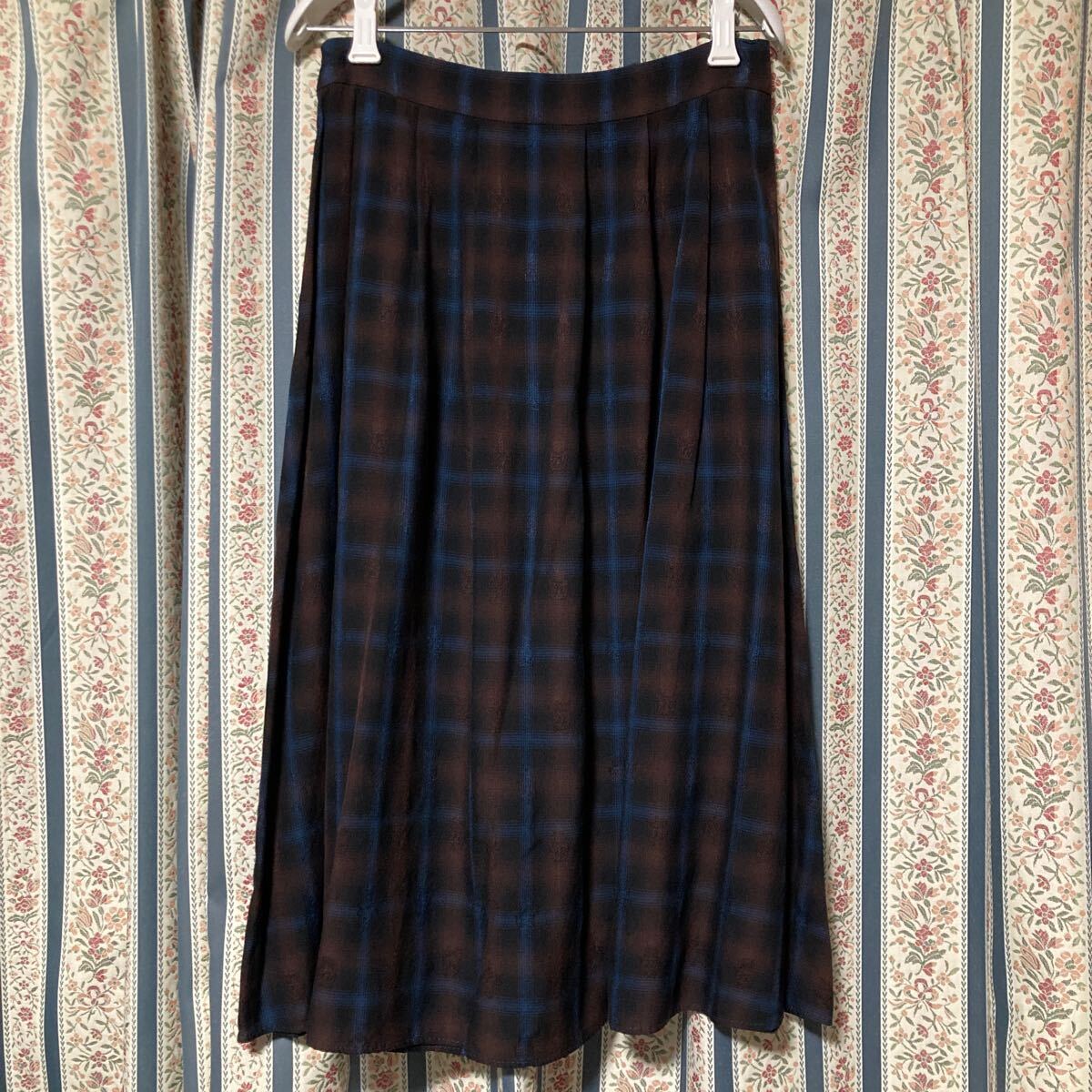 > ヒステリックグラマー スカルジャガード チェック ミモレ丈 タックスカート ドクロ柄 フレア プレッピー アイビー 膝下