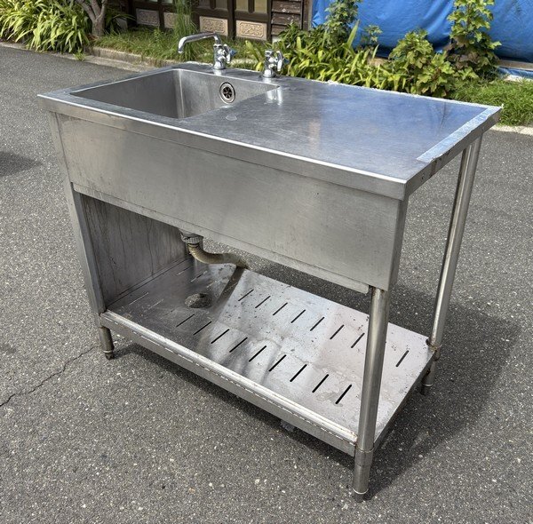 - §【1槽シンク 流し台 蛇口付き 間口1000×奥行565×高さ870mm 業務/厨房用品 店舗用品キッチン用品 】 Q08286