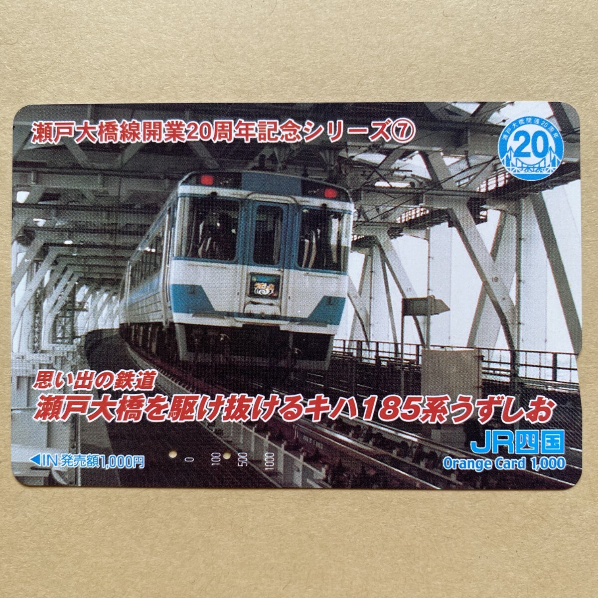 - 【使用済】 オレンジカード JR四国 瀬戸大橋線開業20周年記念シリーズ⑦ 思い出の鉄道 瀬戸大橋を駆け抜けるキハ185系うずしお