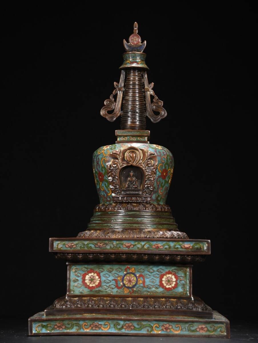 - 清時代 古置物 景泰藍 絡枝蓮紋 舎利塔 中国古美術 古置物 古擺件 古董品 古美味 骨董品 823