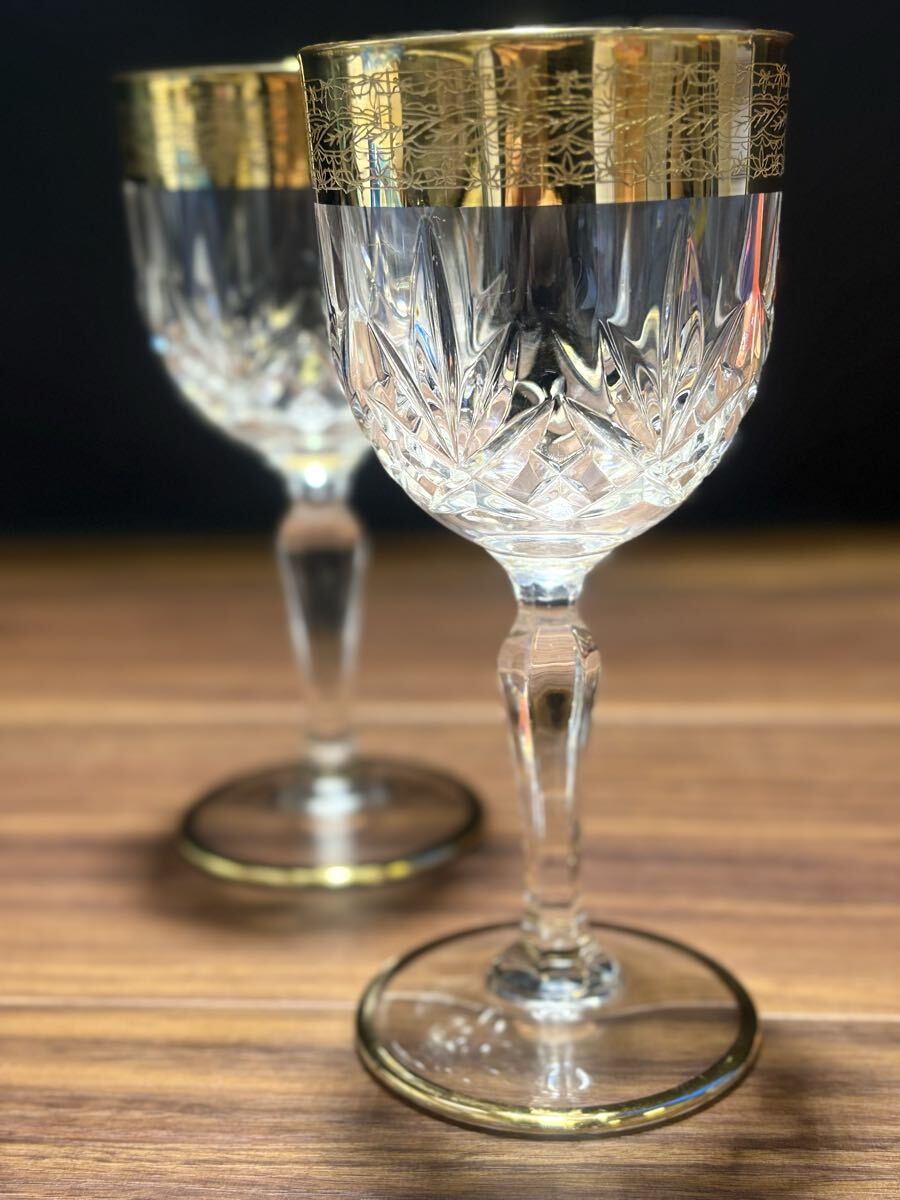 - 【ペアセット】金彩/切子 グラス 詳細ブランド不明 コレクション 検索(Royal Crown/HOYA/GOLD) 【管B975-2508】