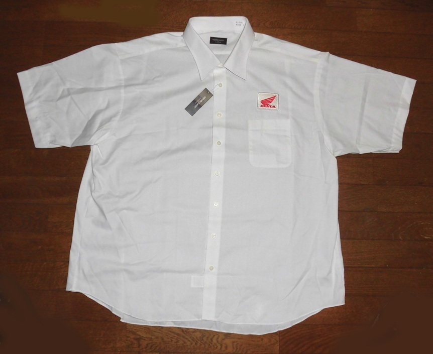> HONDA ホンダ ウイングマーク 刺繍ワッペン付 ボタンシャツ 半袖 形態安定 WHT 大きいサイズ 5L 紙タグ付 未使用品/CBR本田NSRハンターカブ