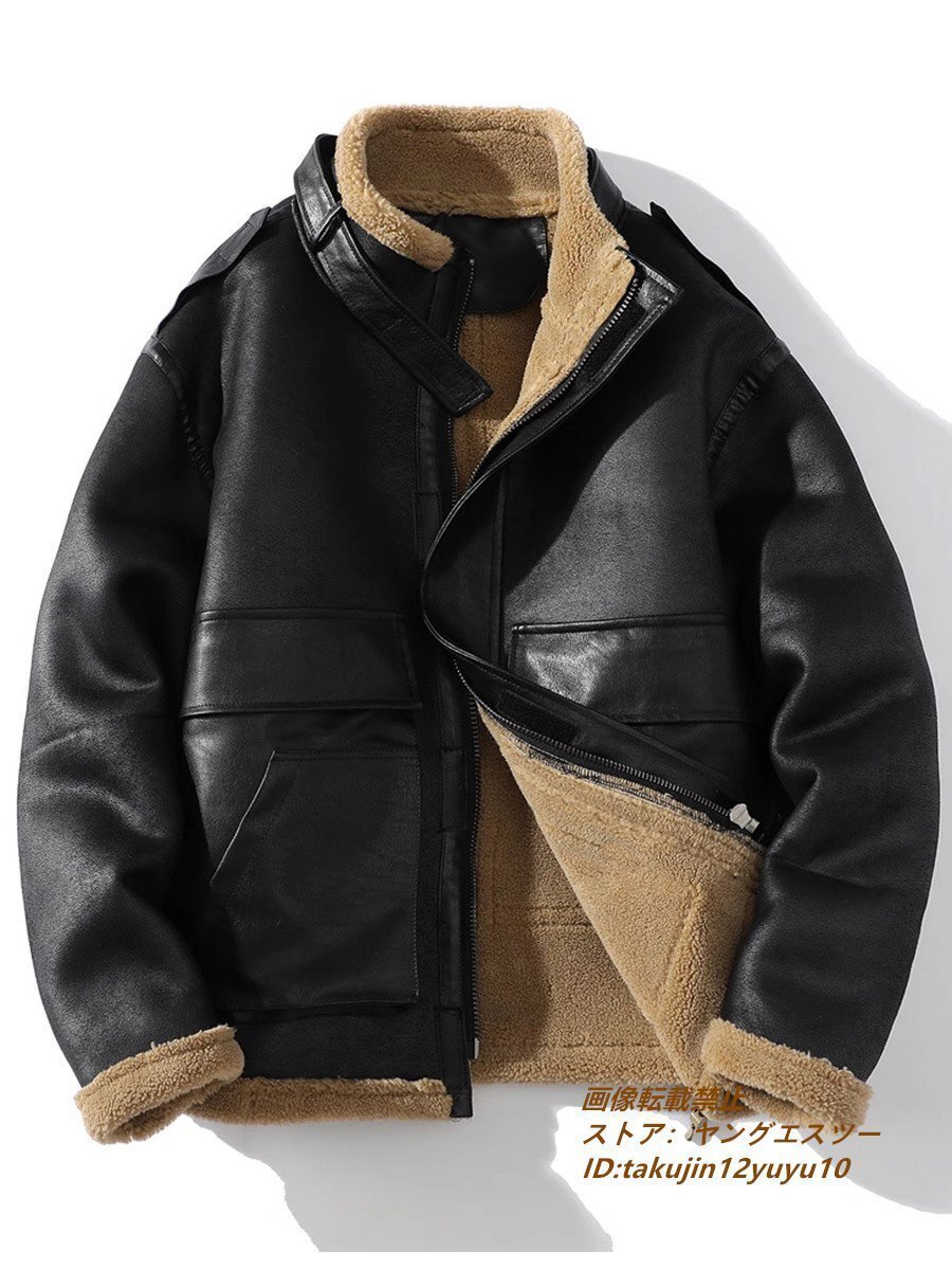- 定価16万 最高級 ムートンコート ブルゾン 毛皮 ファーコート超希少 フライトジャケット 暖か 厚手 レザージャケット ブラック XL