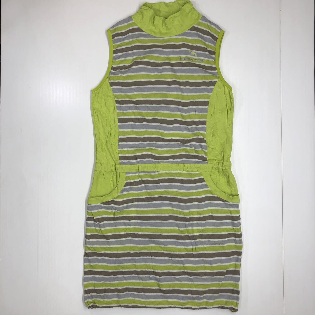 > Heal Creek ビールクリーク ノースリーブワンピース ボーダー柄 ハイネック ミニ 42 L〜XL 48-25