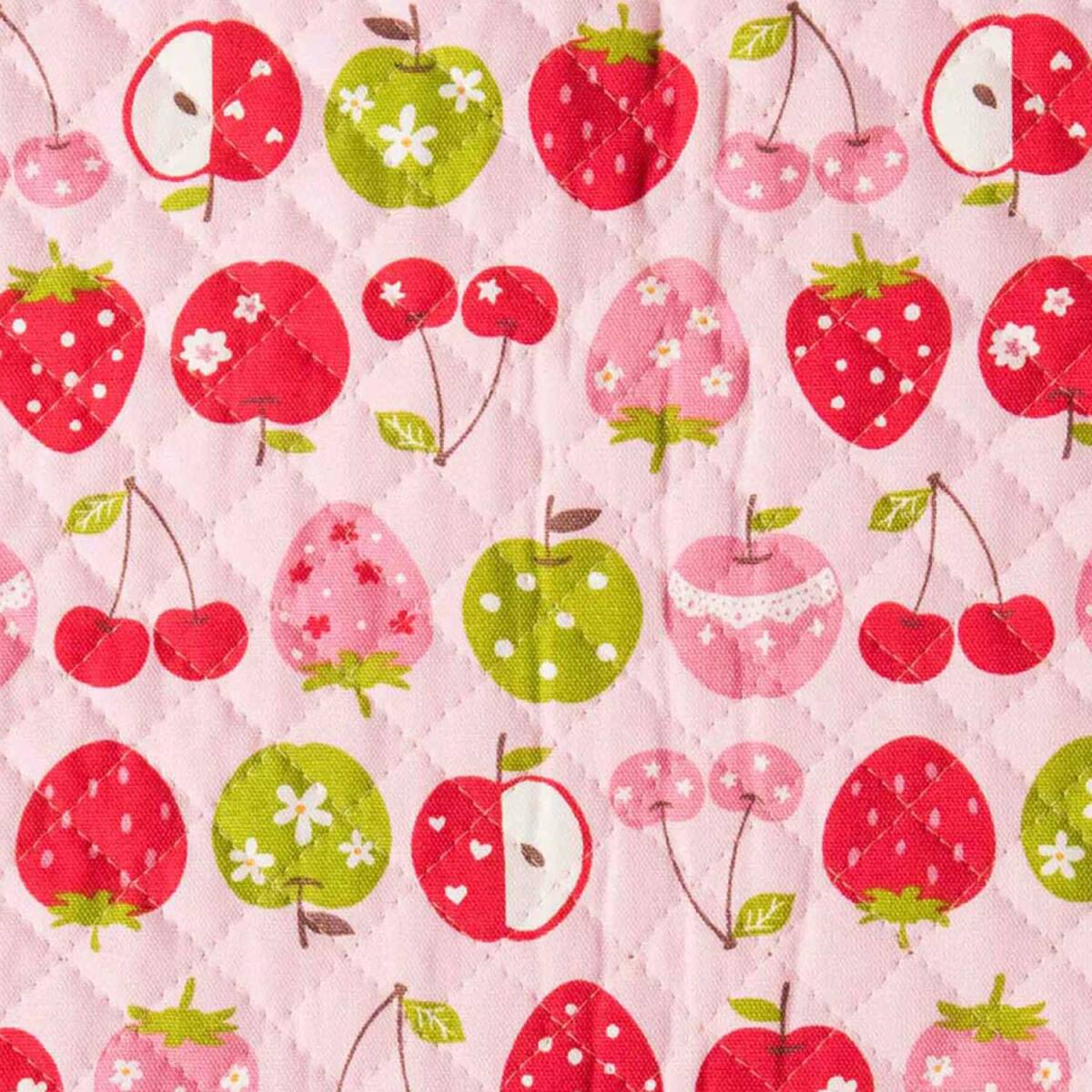 - 生地 キルティング フルーツ 105cm巾×50cmカット 撥水 #5A ピンク KIYOHARA レッスンバッグが作れるレシピ付