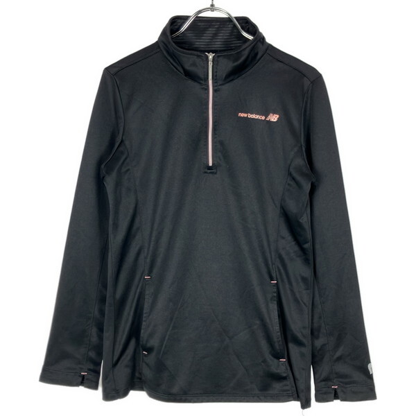 > 古着 レディースM new balance/ニューバランス ハーフジップ ポリエステル トップス スポーツウェア ブラック/ピンク 16393