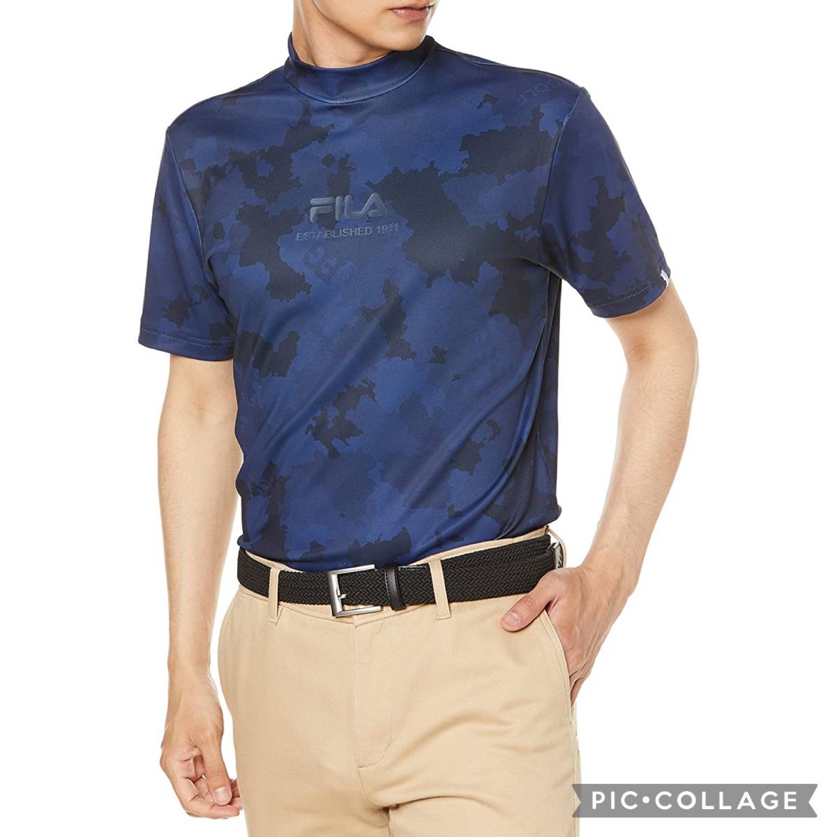 - 新品 フィラ ゴルフ 半袖 モックネック Tシャツ Mサイズ ネイビー 紺 741-684 迷彩 カモフラ 吸汗速乾 UVカット 税込8,690円 ゴルフウェア