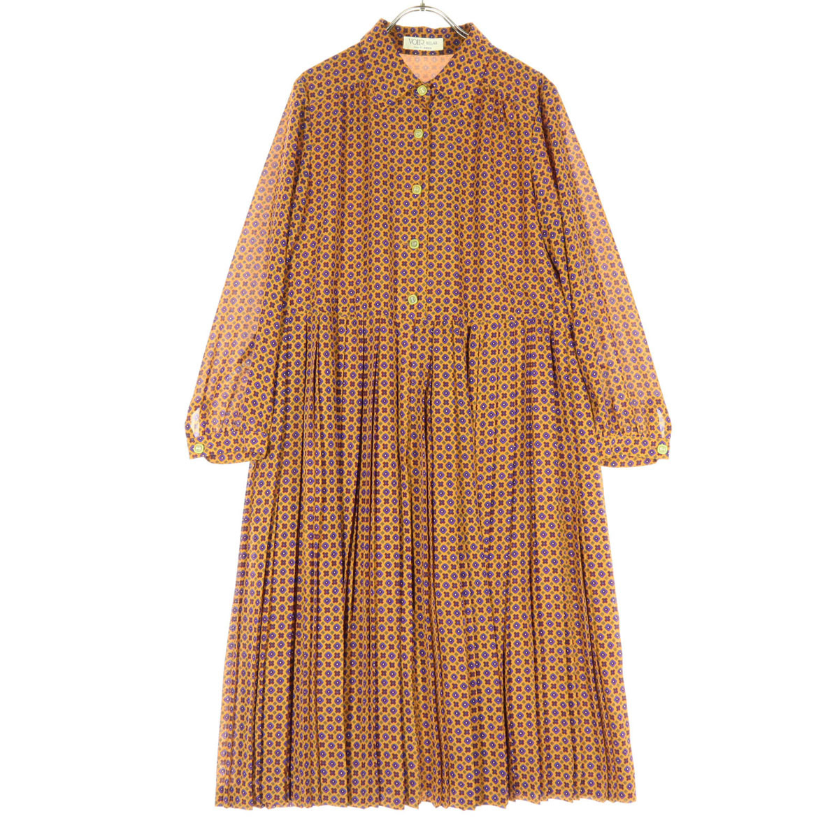 VOIR RERAX 総柄 長袖 ロングワンピース オレンジ系 レディース拍卖