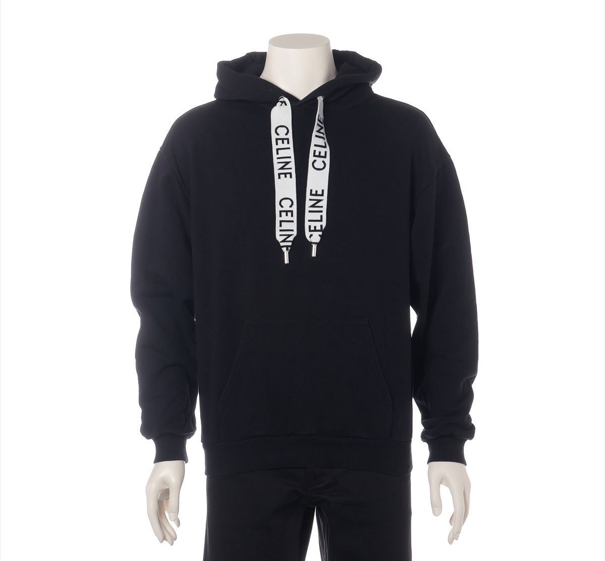 - CELINE エディ期 ルーズ フーディー コットンフリース パーカー メンズ S 黒 ブラック 2Y468670Q