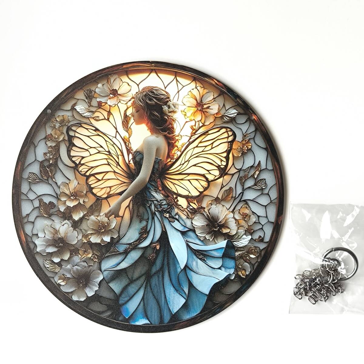 - 【蝶々の妖精・花・蝶々】アクリルプレート 飾り サンキャッチャー チェーン付き オブジェ お洒落 壁や窓辺の飾りに◎