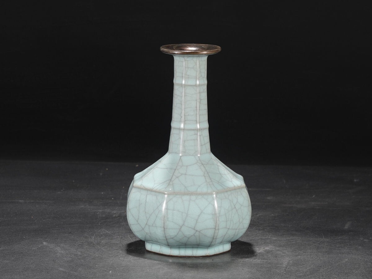- 「宋 官窯 陶磁器 青釉銀口宮廷御用 八方竹節瓶」染付 置物 擺件 古賞物 中国古美術 旧蔵出
