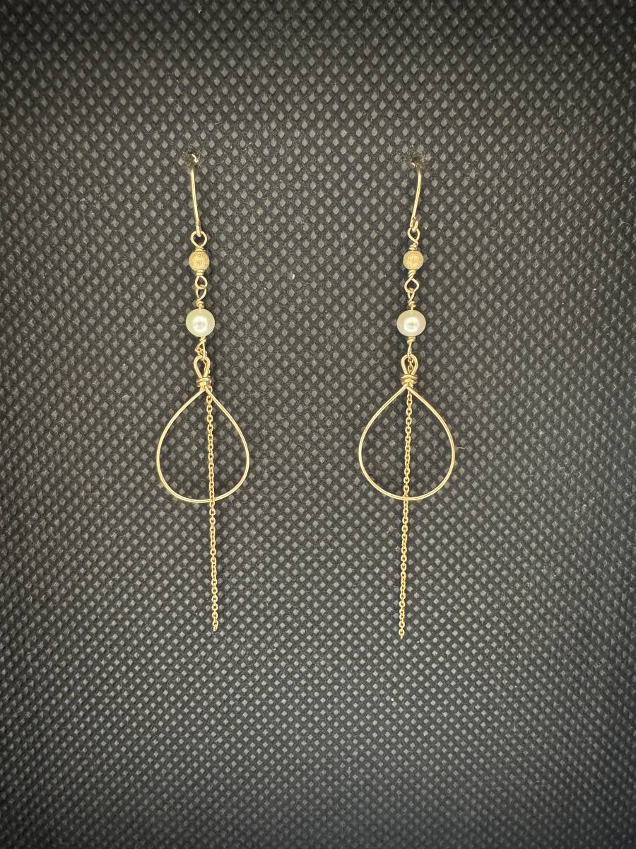 - K14 パール付 デザインピアス 約1.1g シンプル オシャレ 揺れる