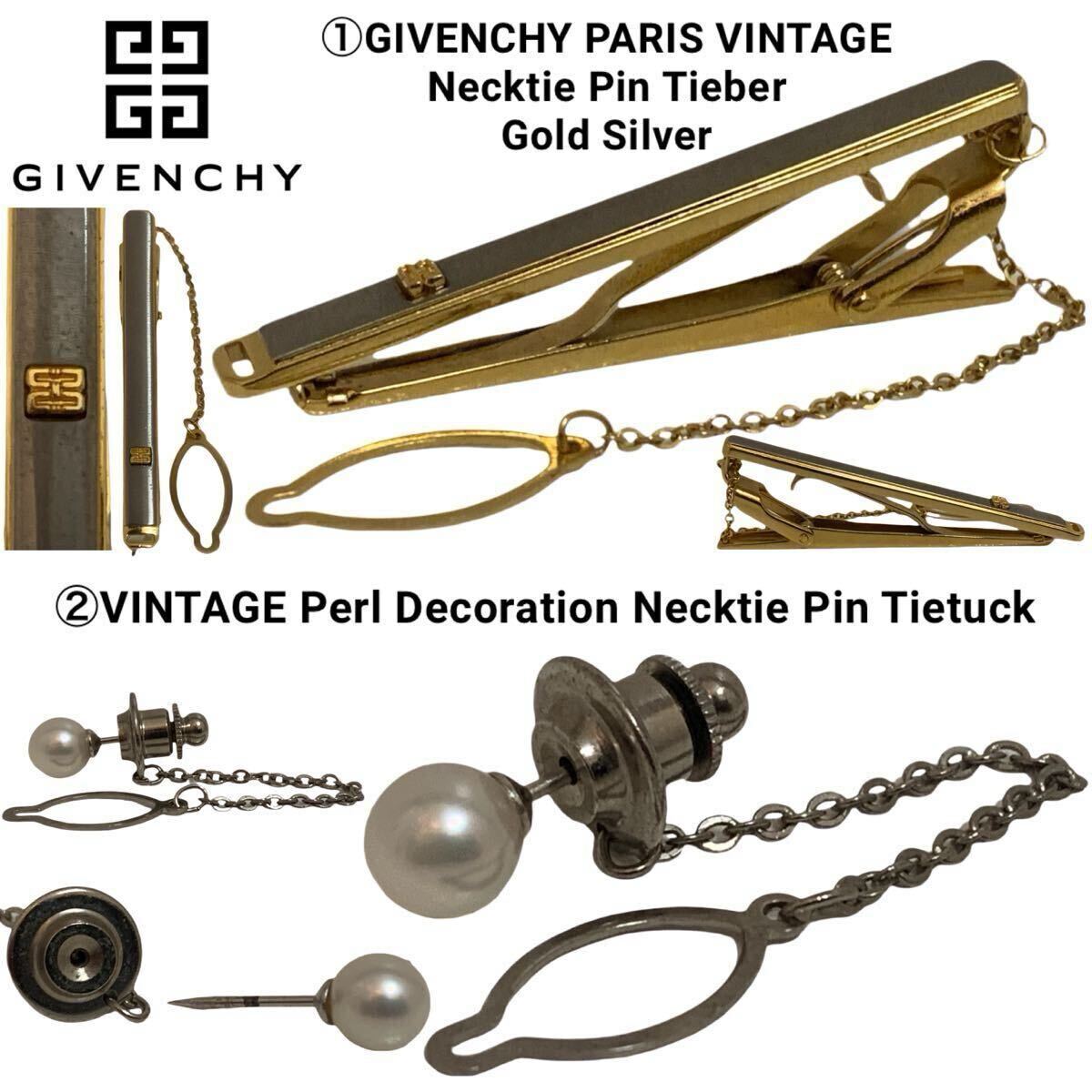- GIVENCHY PARIS VINTAGE ジバンシイ パリス ヴィンテージ ネクタイピン VINTAGE ヴィンテージ パール装飾 タイピン 2点セット アーカイブ