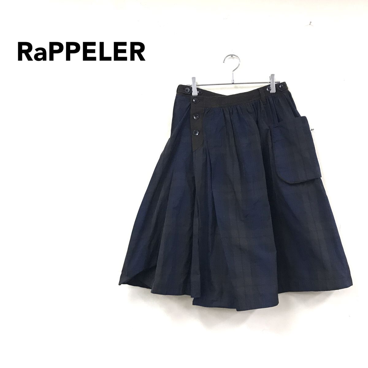 > 2H2346-G-S◆ Ra PPELER ラプレ プリーツスカート チェック 膝丈 ラップ フレア ビッグポケット ◆ size36 ネイビー ポリエステル ウール
