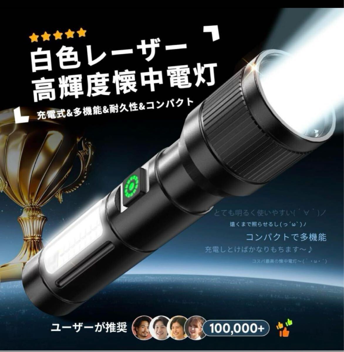 - 1台で安心 多機能 懐中電灯 作業灯 6モード調光 最大照射距離500m ledライト 小型 ハンディライト 強力 最強 充電式