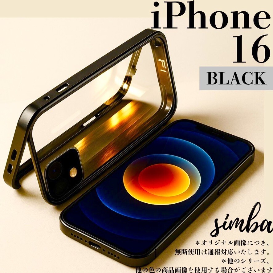 - iPhone 16 ケース ブラック 両面強化ガラス フルカバー 360度保護 高耐久 レンズ保護 おしゃれ 大人 韓国 クリアカバー