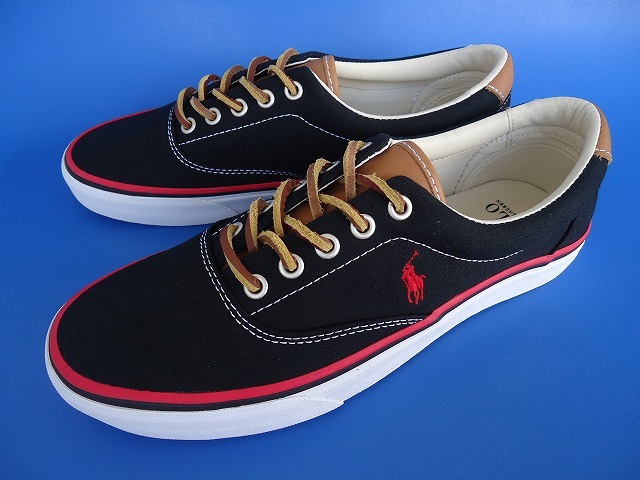 - 15567■新品 未使用 polo RalphLauren ポロ ラルフローレン キャンバス エラ スニーカー 革ひも 黒 US8.5 KEATON-PONY