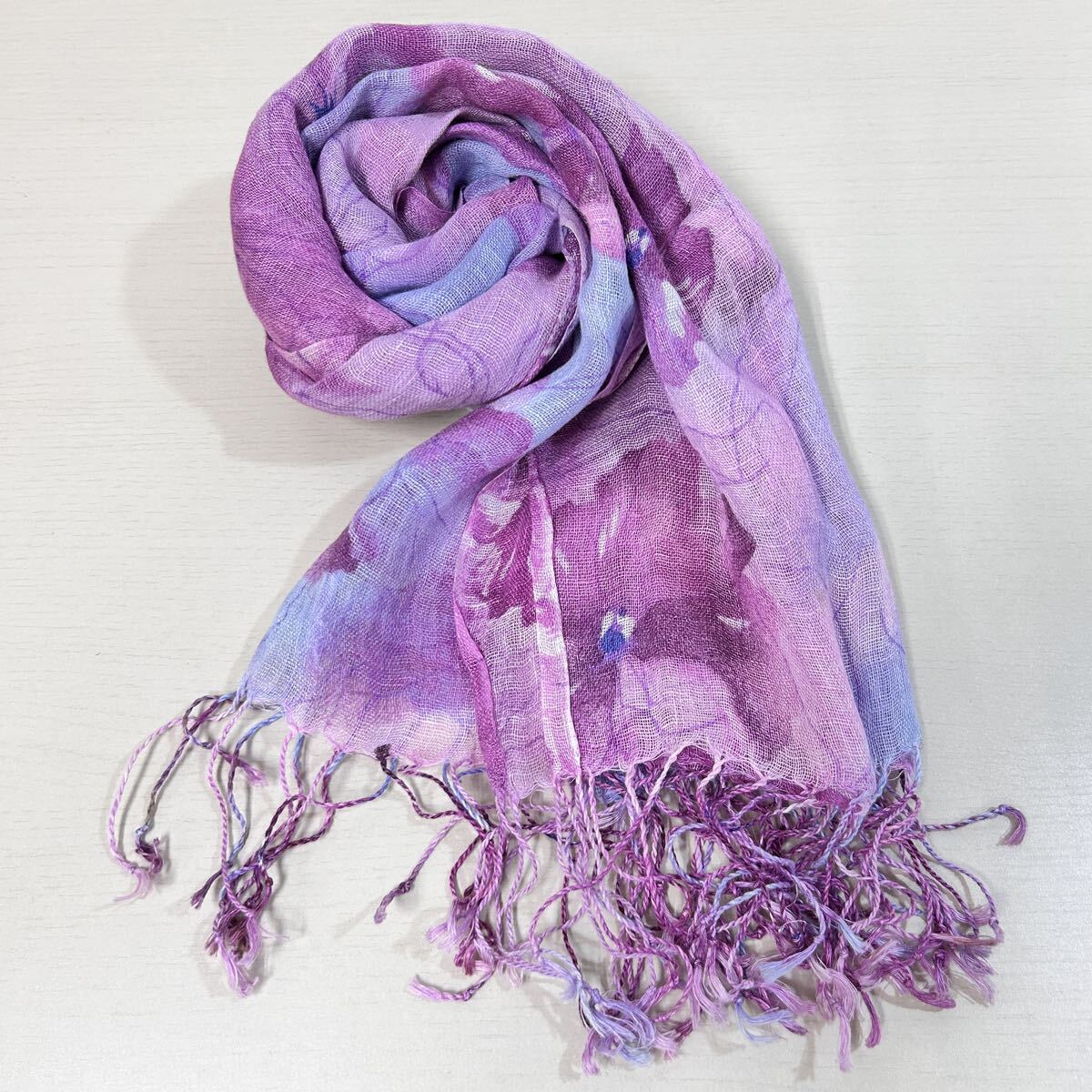 > ★未使用品★60×162cm★ストール 麻100% リネン 大判 ショール マフラー 花柄 総柄 百貨店 紫系 レディース (08257C