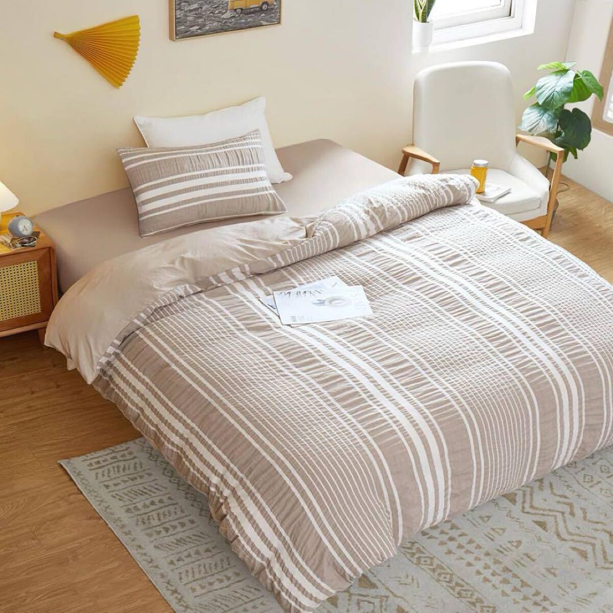 - 大特価 3点セット セミダブル カバーセット ベージュ布団カバー 寝具カバー シアサッカー ストライプ 新生活 引っ越し ベージュ 新品