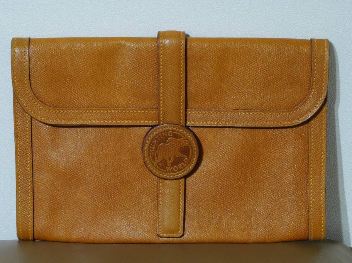 - 本物 ハンティングワールド 本革 レザー セカンドバッグ HW ベルト 差し込み式