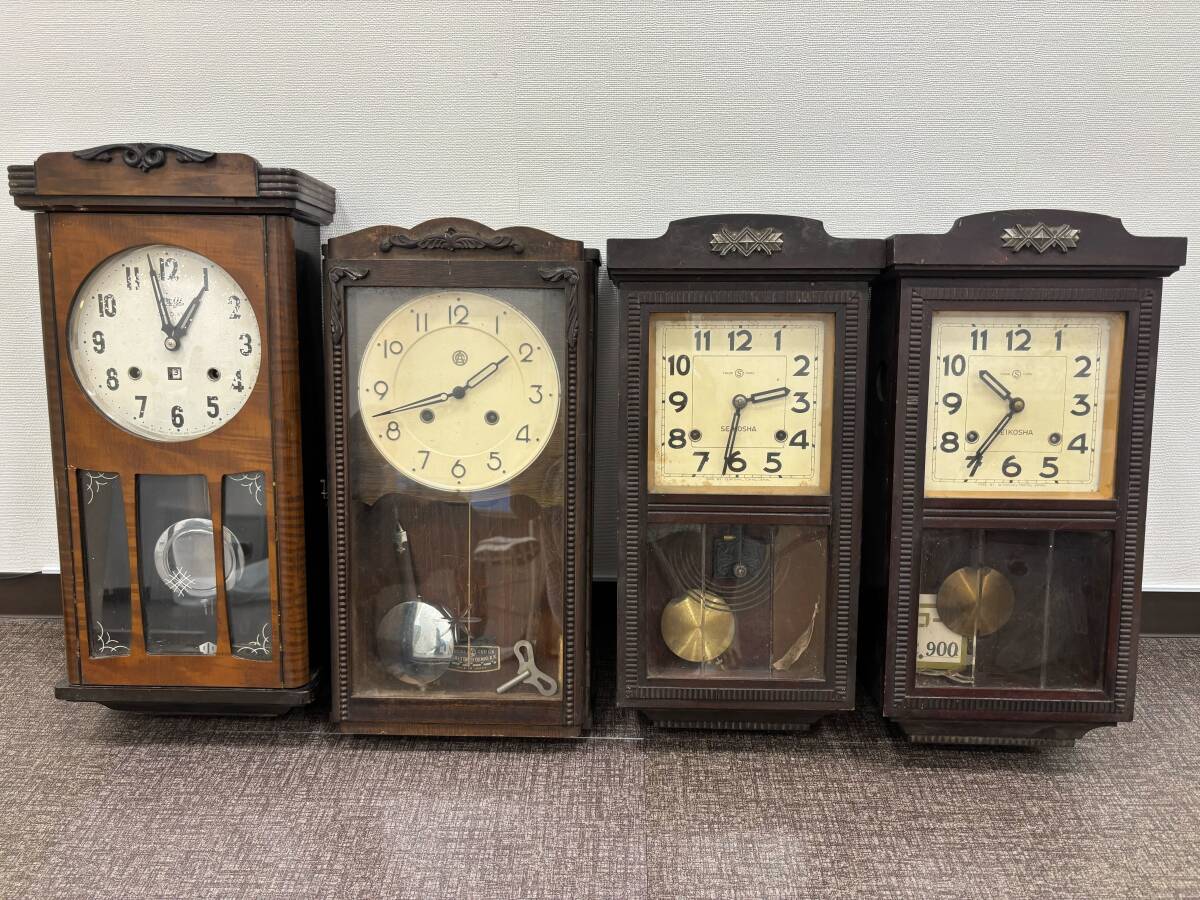 > S-19-186 ④【八】 SEIKOSHA 精工舎 セイコー meiji 明治 アンティーク柱時計 レトロ 計4点まとめ ジャンク扱い