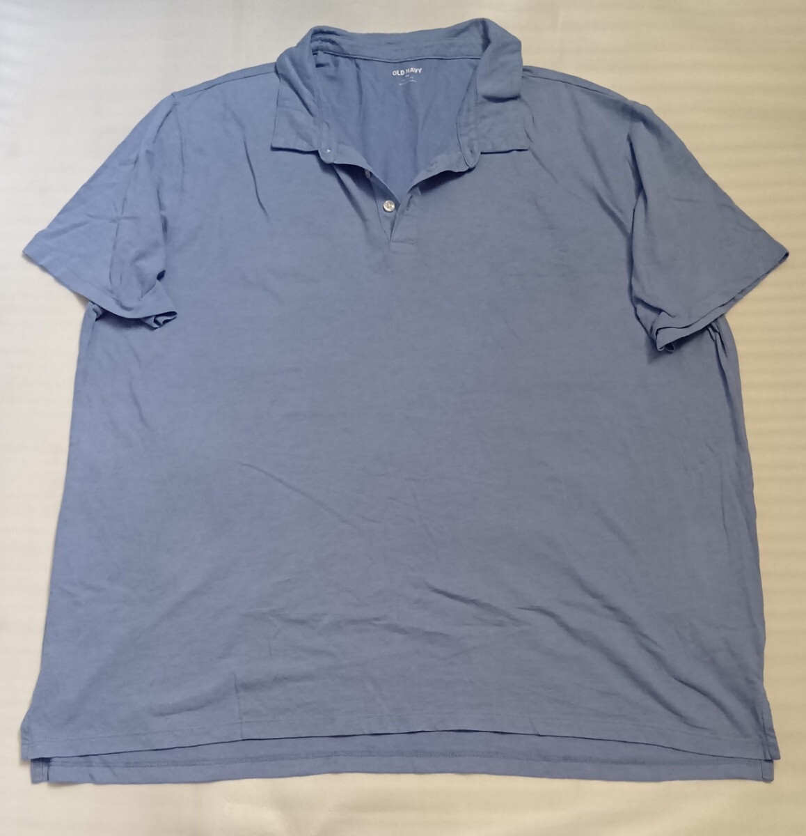 - ☆米国ギャップGAPグループ OLD NAVY サイズXXLポロ3つボタン半袖シャツ無地ミディアム薄水色ブルーSOFT-WASHEDスリット オールド ネイビー