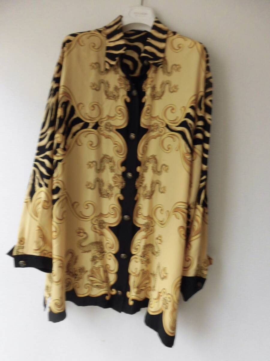 - ●RENA LANGE レナランゲ /黄色黒プリント総柄/長袖シャツロングブラウス/ チュニック羽織もの/サイズLX相当