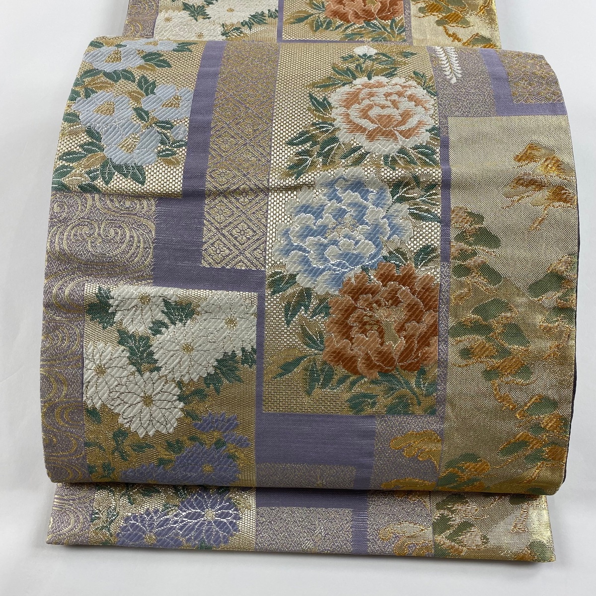 > 袋帯 秀品 草花 流水 箔 金糸 紫 六通 正絹 【中古】