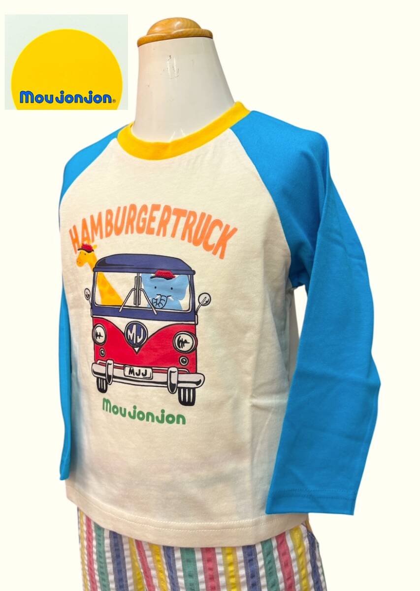 - 即決 新品タグ付 Moujonjon ムージョン★キリンさん ゾウさん ハンガーガートラック 天竺 長袖Tシャツ★良質素材 ★100cm 3-4才 ¥1760