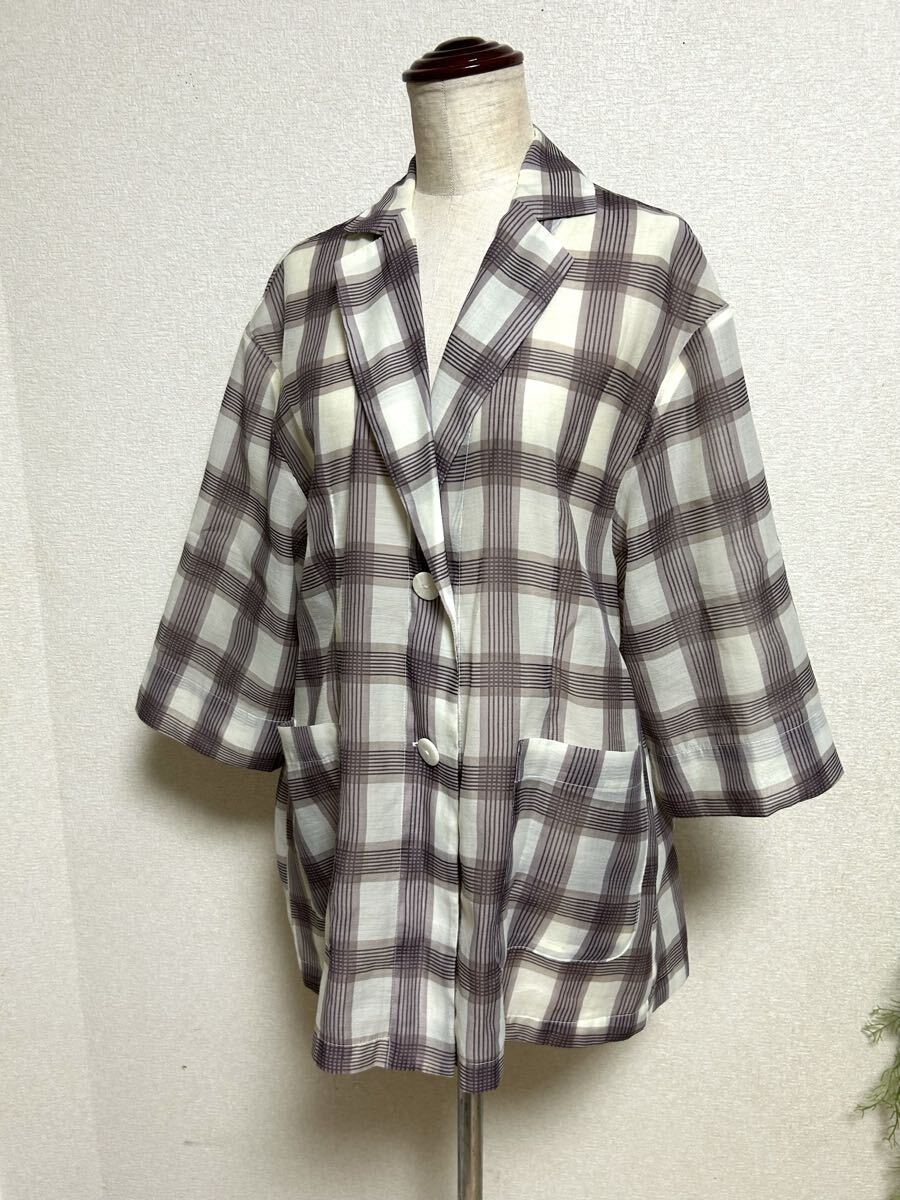 - 【 MOUSSY★マウジー】チェック柄オーガンジージャケット・七分袖丈程度・透け感・ゆったり・Fサイズ