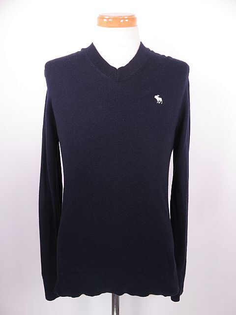 > 【送料無料】アバクロンビーアンドフィッチ Abercrombie&Fitch Vネック長袖セーター 紺 ロゴ刺繍入り S