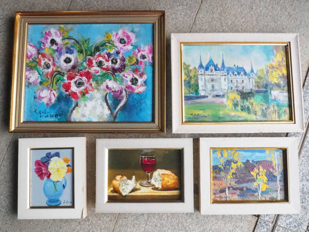 - 【油彩肉筆画5点セット】田中祥三 平野剛敏 中山爾郎古道具アンティーク骨董インテリア絵画インダストリアル額縁静物画デッサン油絵風景画