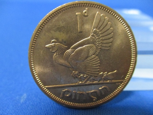 - アイルランド 1ペニー銅貨☆1968年/極美品/ひよこと鶏/アンティークコイン/i0827-2