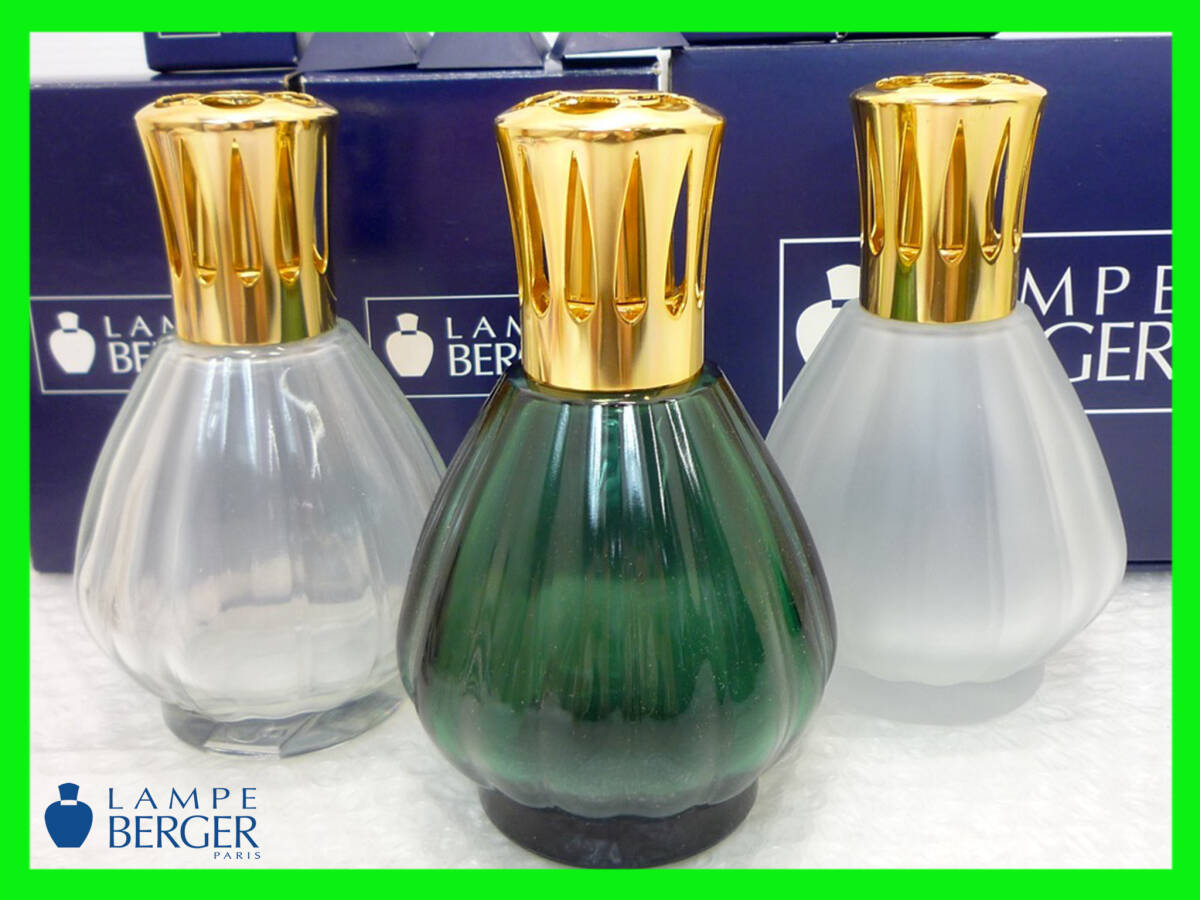 - 未使用 ランプベルジェ フルール 3個セット クリア グリーン スノウ 透明 緑 雪色 Lampe Berger アロマランプ Fleur 芳香器 箱 ロート 芯T1