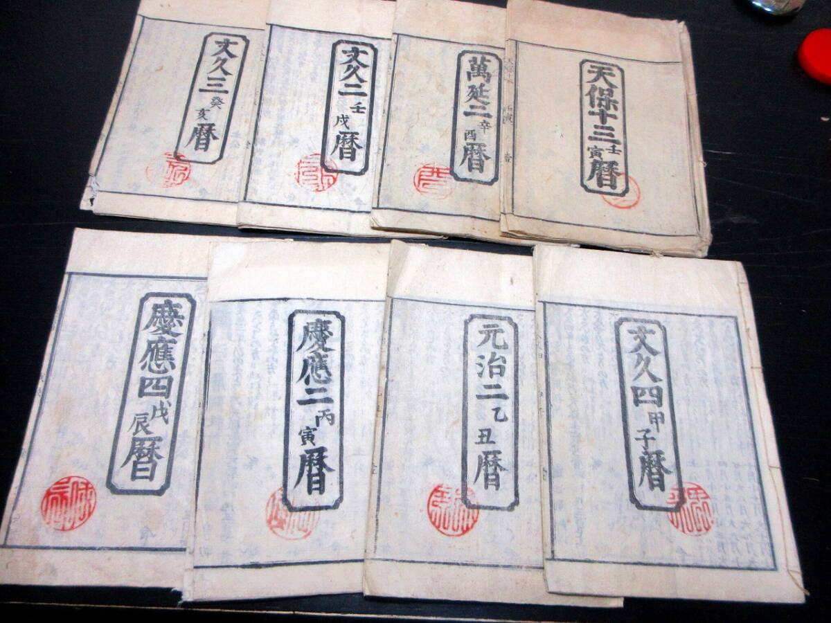 - ★S18和本江戸天保~慶応カレンダー「江戸暦」8冊一括/近江屋新八/鱗形屋小兵衛/鱗形屋藤次郎/近江屋勇助/古書古文書/木版摺り