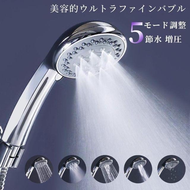> マイクロナノバブル ウルトラファインバブル シャワーヘッド 5段階モード 毛穴 ミスト 極細水流 保湿 美肌 増圧 高洗浄力 毛穴汚れ除去
