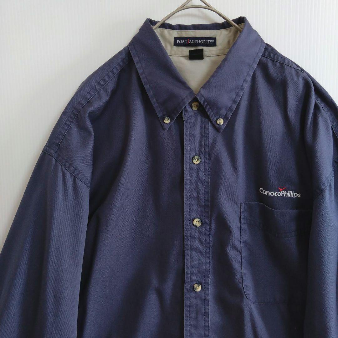 - 2504 PORT AUTORITY 長袖ワークシャツ XL 艶無濃紺 US古着