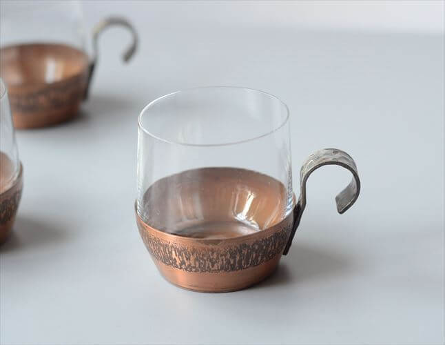- ドイツから グラスカップ クリア×銅ホルダー コパー ガラスカップ ヴィンテージ アンティーク_it3977