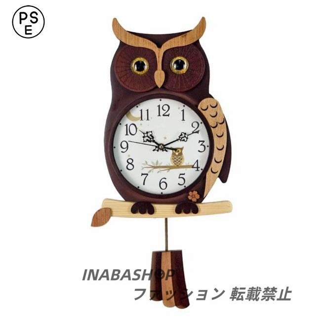 - 振り子時計 フクロウ 壁掛け時計 木製 ふくろう 可愛い 掛け時計 静音 電池式 モダン おしゃれ 振り子壁時計 子供部屋用 リビングルーム
