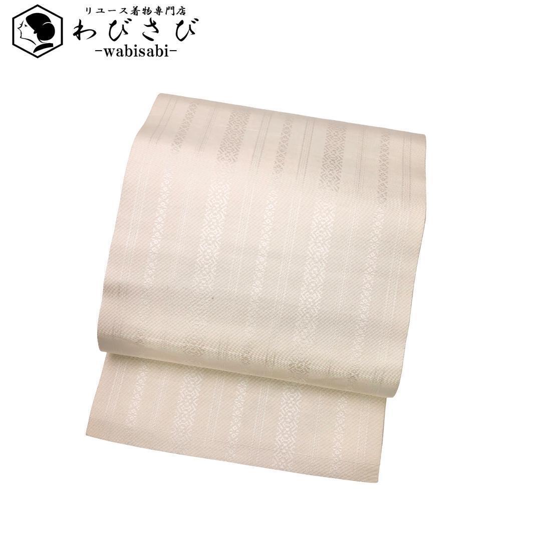 > 名古屋帯 本場筑前博多織 献上柄 乳白色 O-5443 着物 きもの kimono 和服 和装 中古 リサイクル着物 【送料無料】