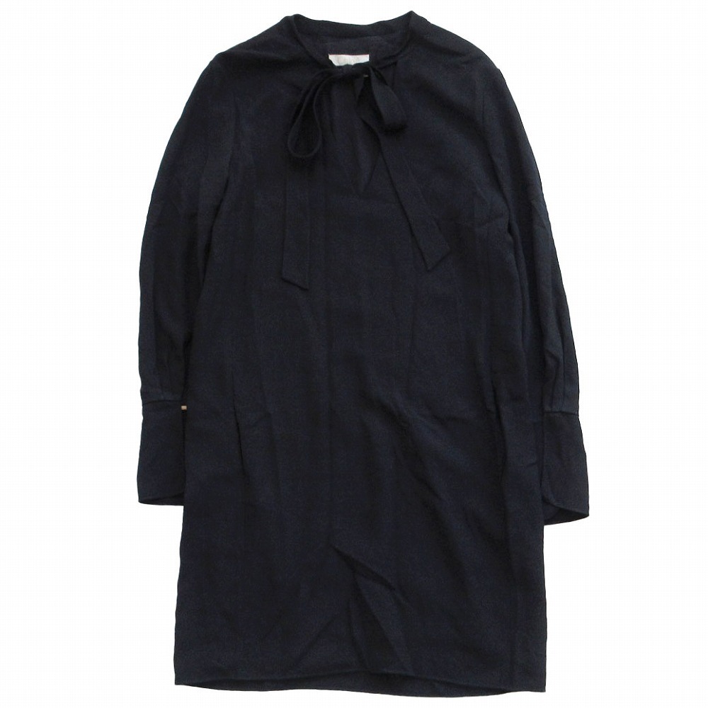 - CHLOE クロエ 16HRO30-16H237 ネックタイシャツドレス ワンピース 長袖 ひざ丈 ネイビー サイズM レディース 【中古】