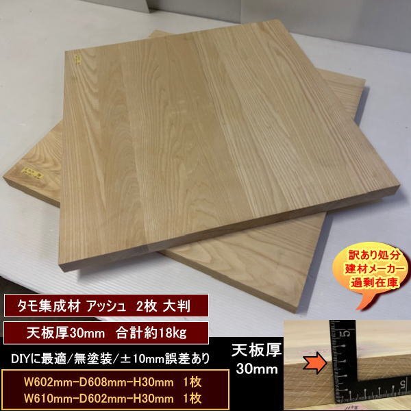- タモ アッシュ 集成材 高級材 端材 2点セット 約18kg 無塗装 タモ集成材30 602-608-30mm 他1 送料無料 訳あり処分 重量あり