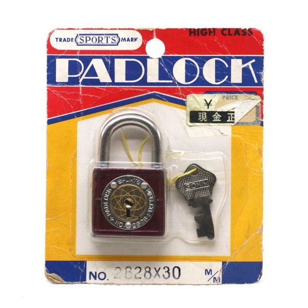 - 011b デッドストック ジャンク扱 南京錠 SPORTS 30mm アンティーク ビンテージ 昭和レトロ PADLOCK