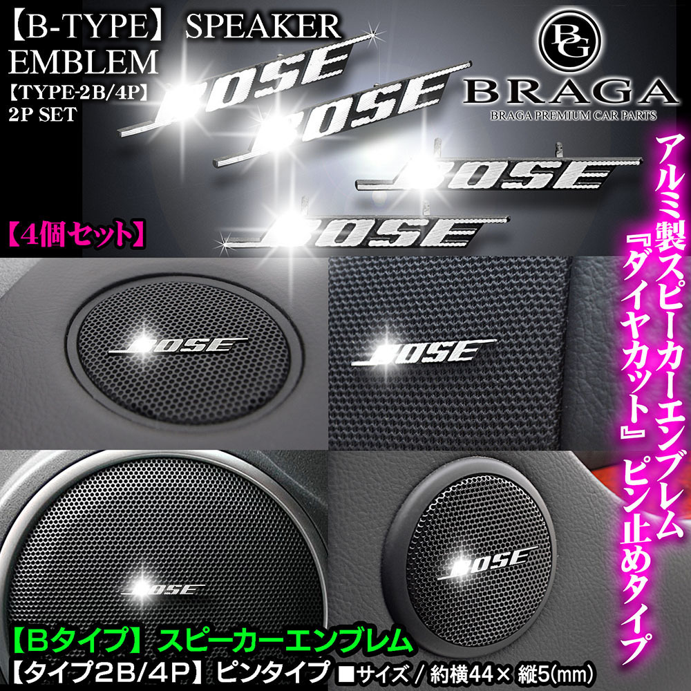 > タイプ2B/4P ピン付 Bタイプ/スピーカーエンブレム 4個セット/アルミ製 ポリッシュ 鏡面仕上/互換品/ブラガ BG BRAGA