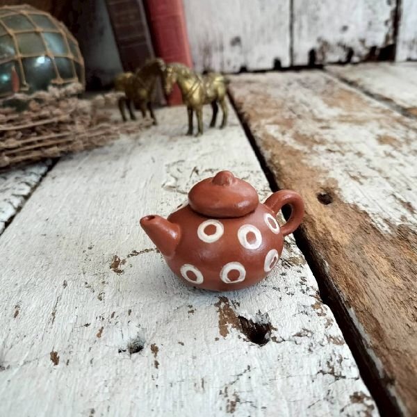 - 未使用 小型 朱泥 急須 高さ3.5cm 小振 茶注 素焼き 焼物 陶器 陶磁器 茶器 手描き 煎茶道具 中国美術 ミニチュア ポット