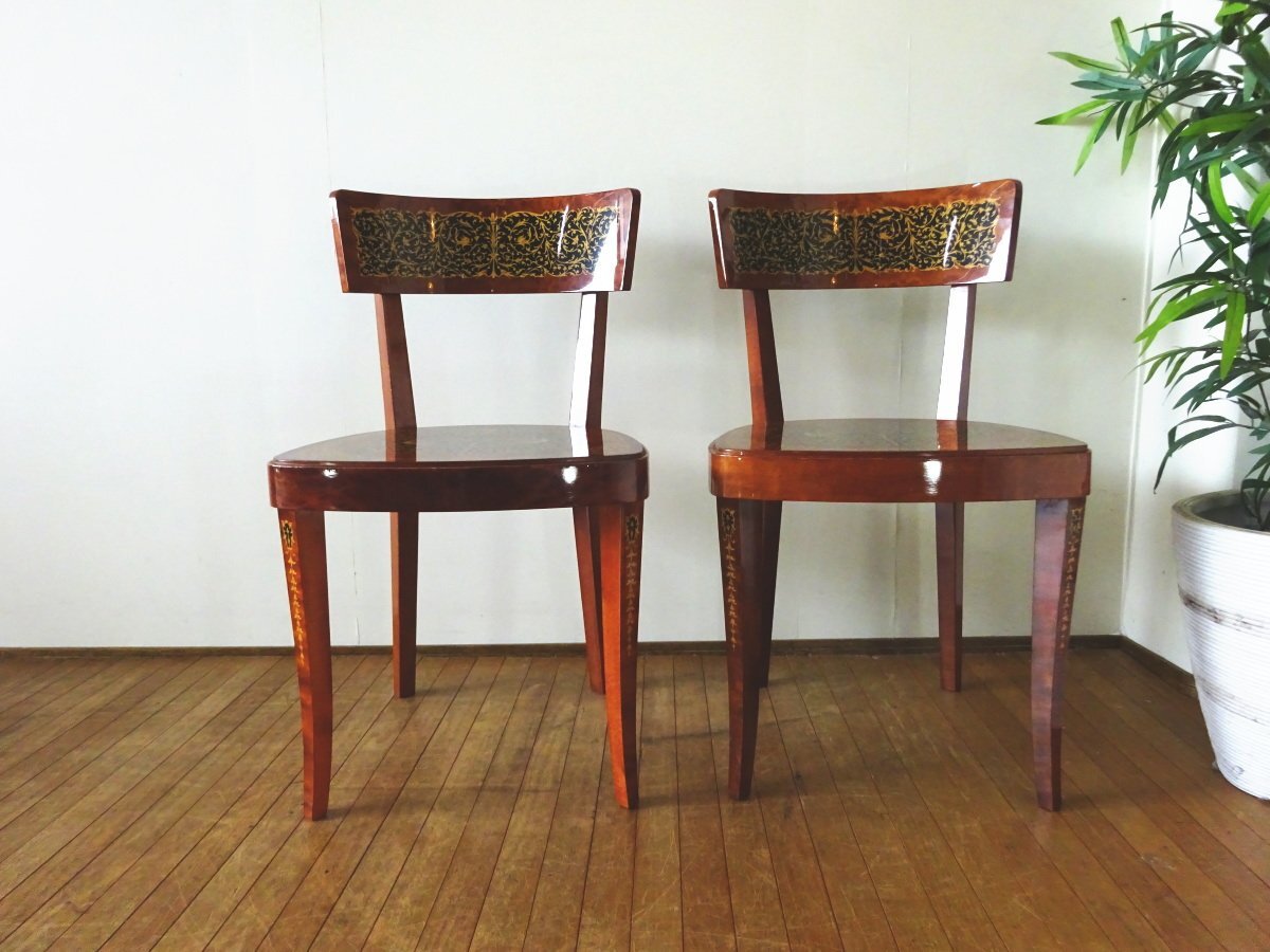- osk070828 【イタリア家具】 象嵌 鏡面仕上げ 椅子 ダイニングチェア 2脚セット