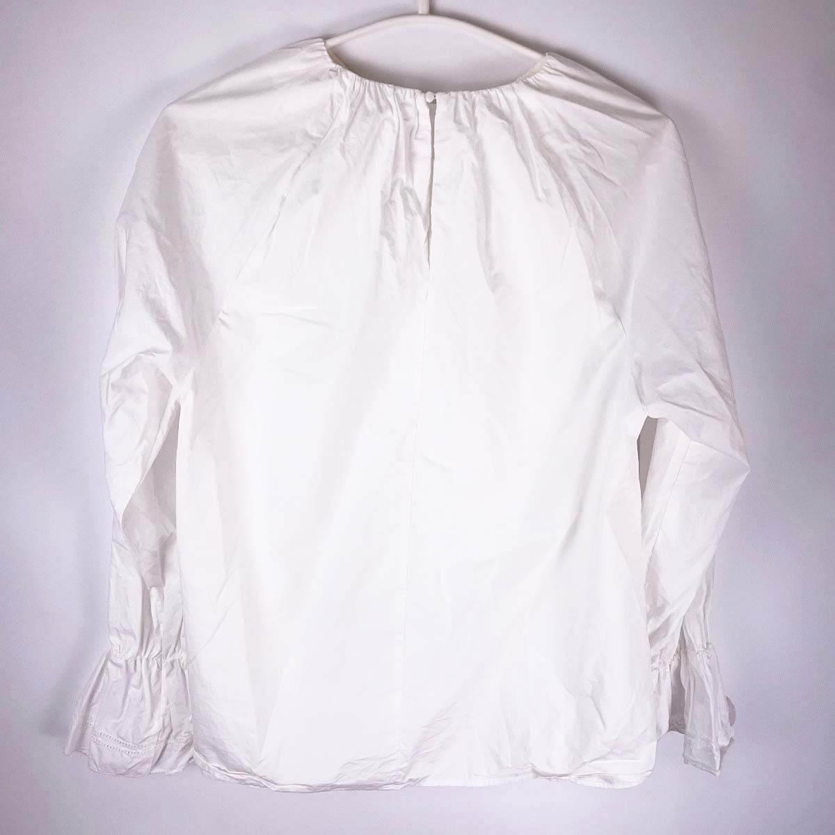 - 【中古】Mila Owen ミラオーウェン ネック ギャザー袖 フリル ブラウス サイズ0 ホワイト 09WFT221065 レディース