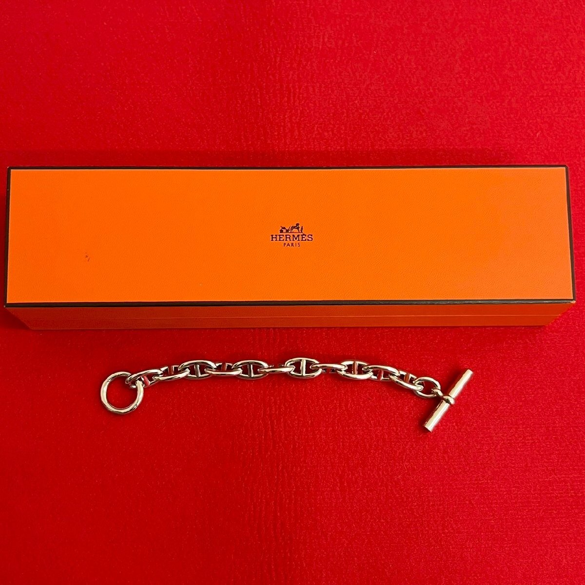 > 極 美品 箱付き HERMES エルメス シェーヌダンクル GM 11コマ シルバー925 チェーン ブレスレット バングル アクセサリー シルバー 80784
