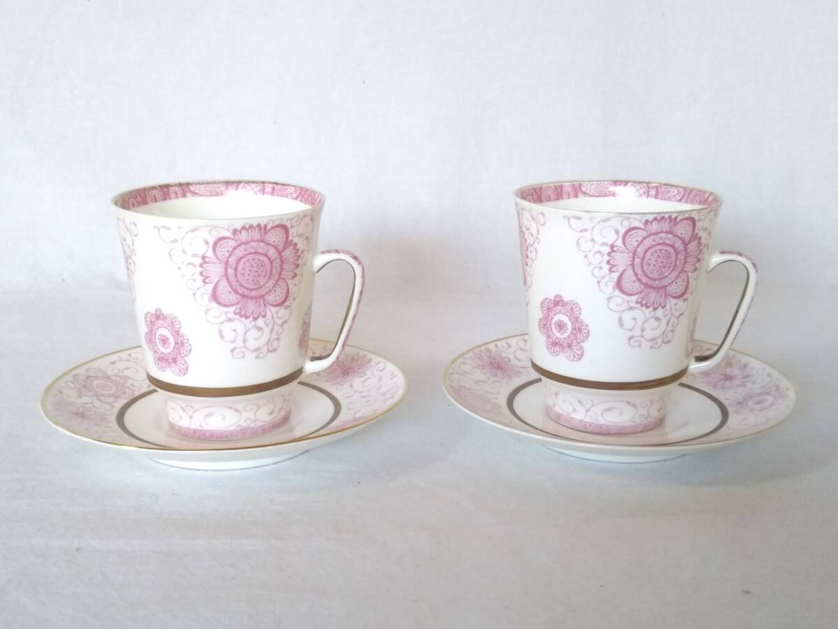 - ★ロモノーソフ カップ&ソーサー ペア 2客セット インペリアルポーセリン ピンク 金彩 花柄 旧ソ連製 箱なし 現状渡し